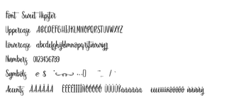 Met verschillende gewichten en decoratieve omtrekken is Sweet Hipster ideaal voor opvallende merchandise of uitnodigende titels. Het ontwerp voelt zowel nostalgisch als eigentijds aan, waardoor het perfect aansluit bij verschillende stijlen. Of het nu gedurfd of subtiel wordt gebruikt, Sweet Hipster stimuleert creativiteit en biedt een hippe esthetiek die in elke context tot zijn recht komt.